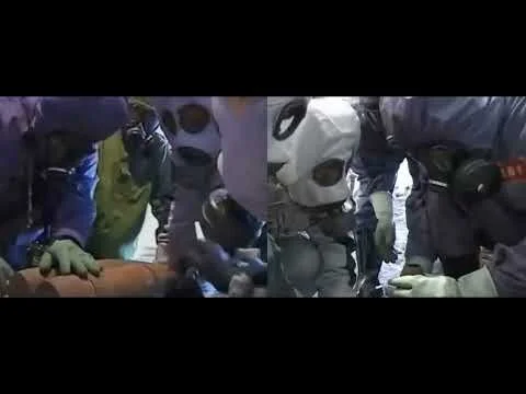 The material for this section comes from archival images on the Japanese government website. Japanese scientists travel to China to work with Chinese scientists to find and destroy weapons buried in Chinese territory during the war of the Second Sino-Japanese War (War of Resistance). The movement of the scientist shaking the bomb up and down reminded me first of the act of dropping a bomb. One generation dumped weapons on the territory of another, and a new generation is working for them to solve these legacies, while at the same time a new war is being fought. The act of bomb-dropping-checking is like a circle that people can't get out of.